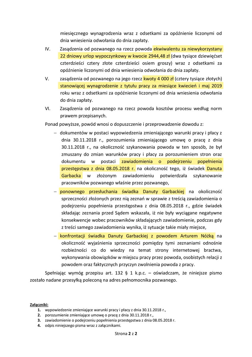 Tak jak poprzednio, sam napisałem i złożyłem do Sądu Rejonowego odwołanie tym razem od dyscyplinarnego wypowiedzenia umowy o pracę.